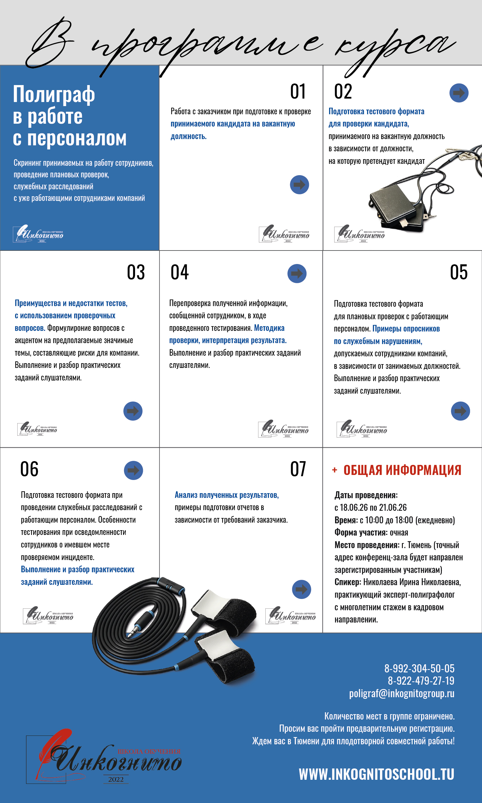 Тема курса: Полиграф в работе с персоналом. Скрининг принимаемых на работу сотрудников, проведение плановых проверок, служебных расследований с уже работающими сотрудниками компаний.